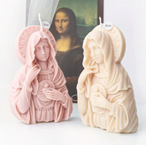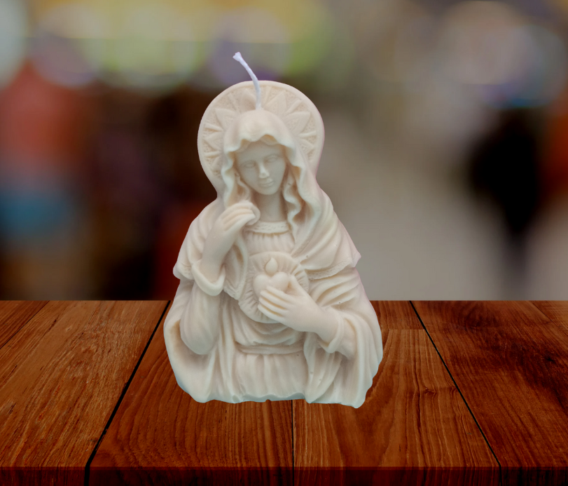 Una vela delicada y simbólica que representa a una mujer con aureola, símbolo de pureza, espiritualidad y protección ✨👩🦰