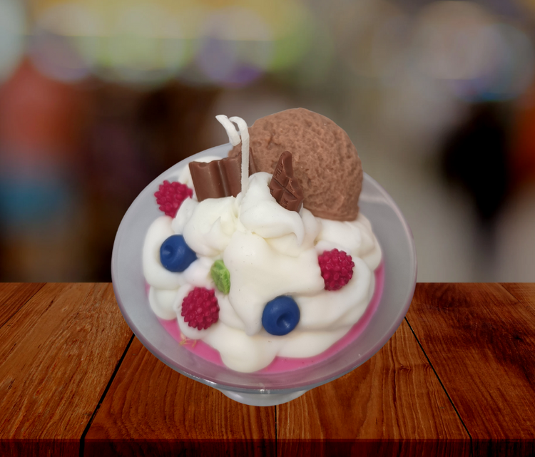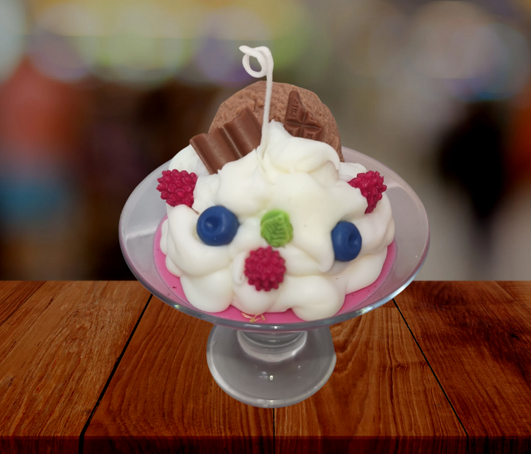 Vela en copa de helado con frutas – 100% cera de soja, hecha a mano
