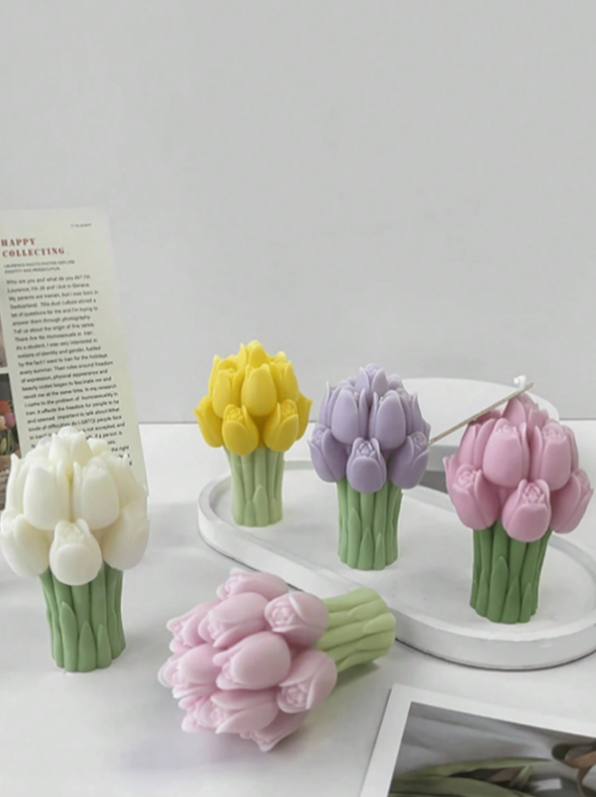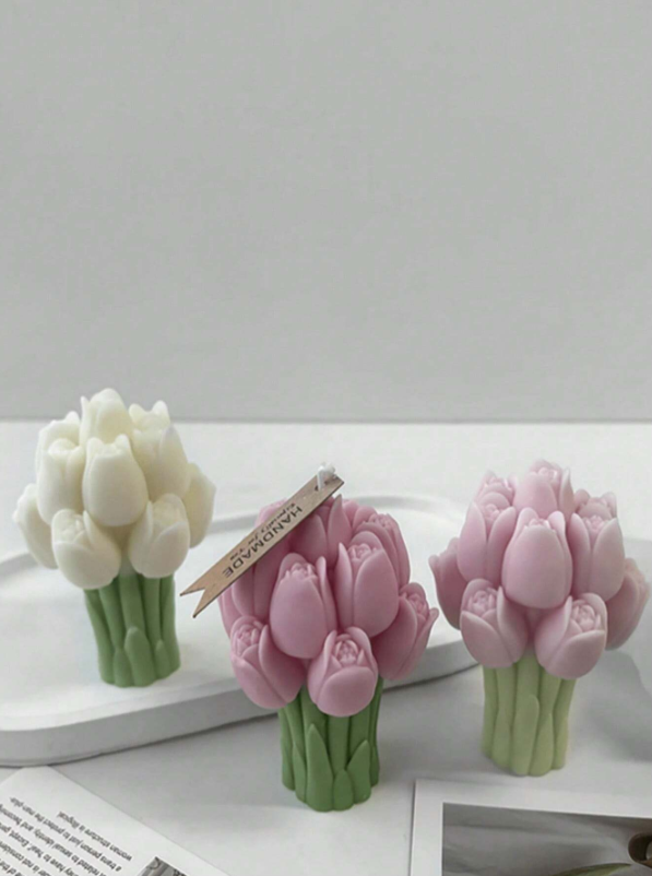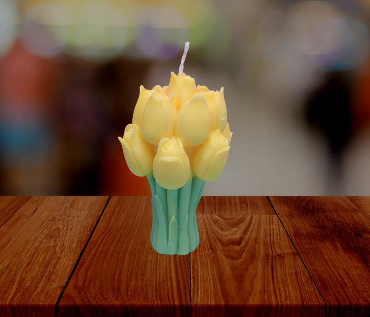 Vela en forma de ramo de tulipanes – 100% cera de soja, hecha a mano