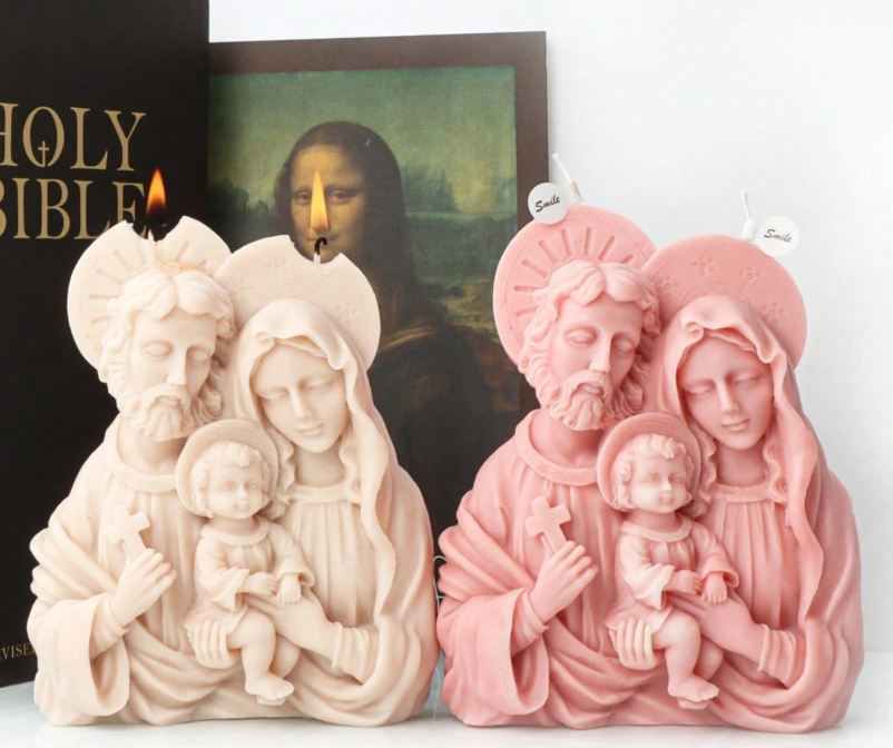 Una vela que representa la unión sagrada entre padre, madre e hijo, todos con aureolas 👪✨